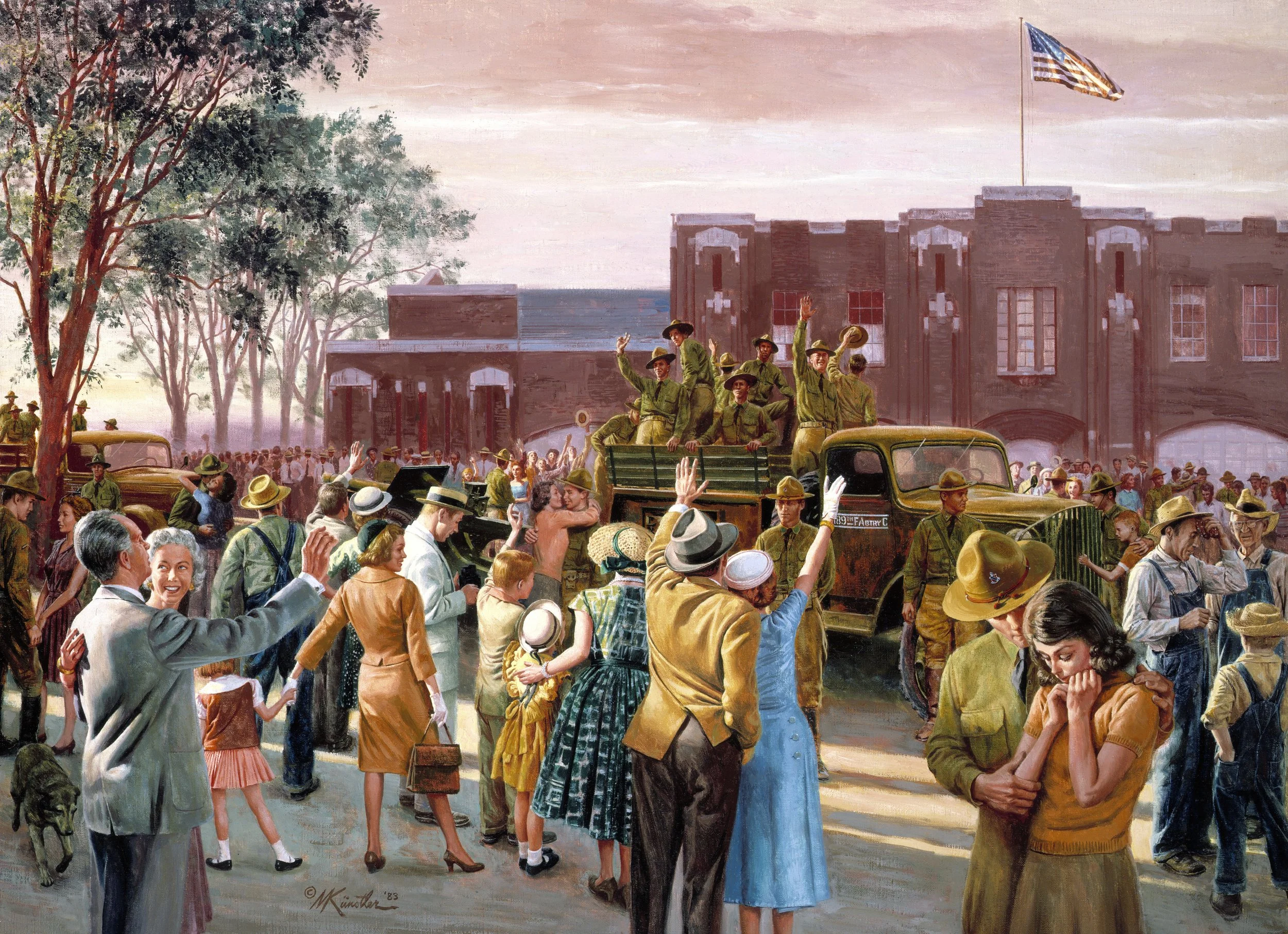 Mort Kunstler, “‘Goodbye Dear, I’ll Be Back in a Year,’” National Guard, accessed July 9, 2024, https://www.nationalguard.mil/Resources/Image-Gallery/Historical-Paintings/Heritage-Series/Goodbye-Dear/.